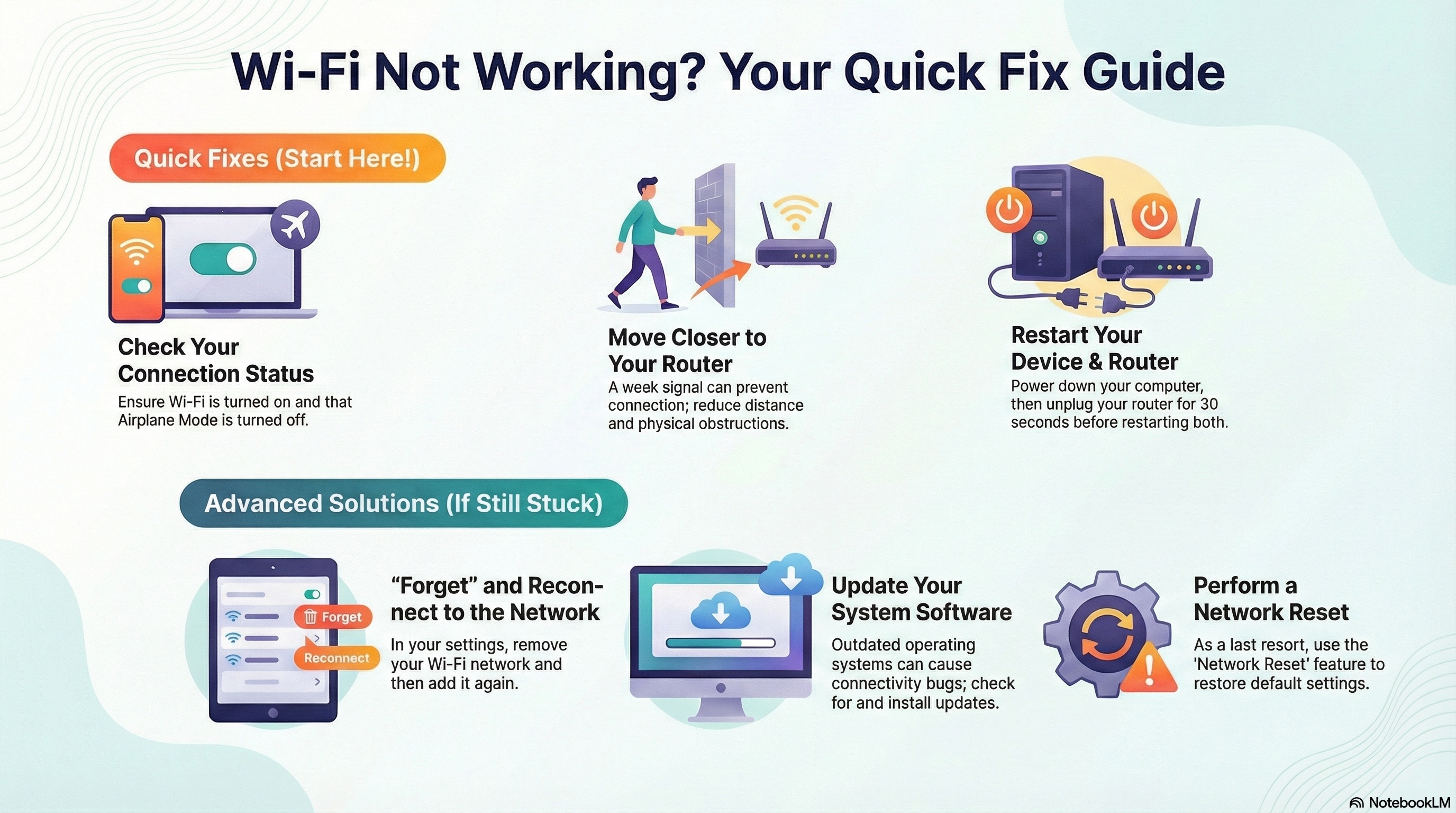 1. Verify Wi-Fi Settings Ensure the Wi-Fi radio is actually active.